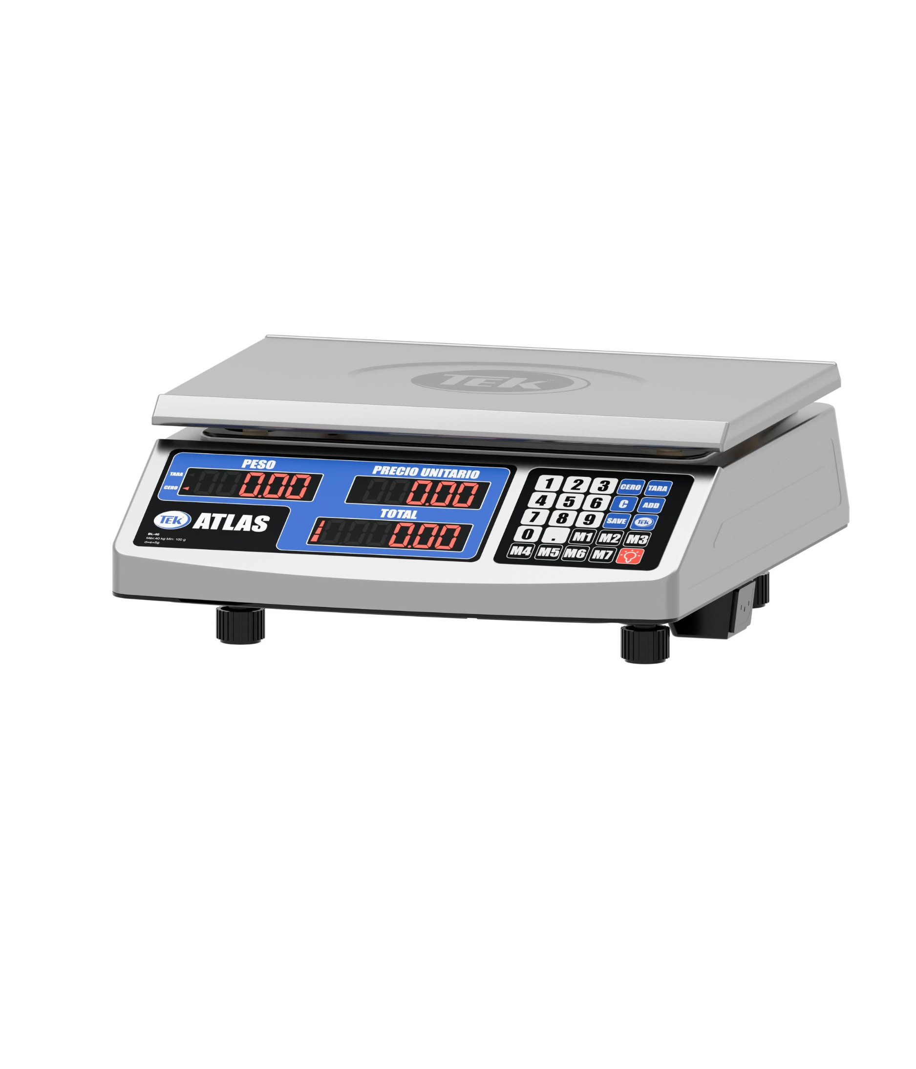 La balanza electrónica TEK ATLAS es la combinación perfecta entre precisión y resistencia. Con una capacidad de 40 kg y división de 5 g, su estructura en acero inoxidable 201 garantiza durabilidad. Cuenta con doble display para vista al cliente; además su pantalla LED roja facilita la visualización tanto para el operador como para el cliente.
