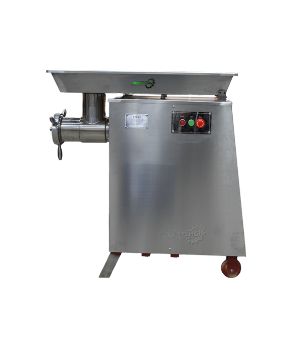 Molino de piso para carnes # 42 marca Machines HG es un equipo diseñado para altas producciones ya que posee un motor de 4 caballos de fuerza y una salida amplia de producto lo cual le permite realizar una molida rápida ahorrando tiempo y dinero, su producción nominal es de 500kg/hora es ideal para plantas de procesamiento de carnes y embutidos.